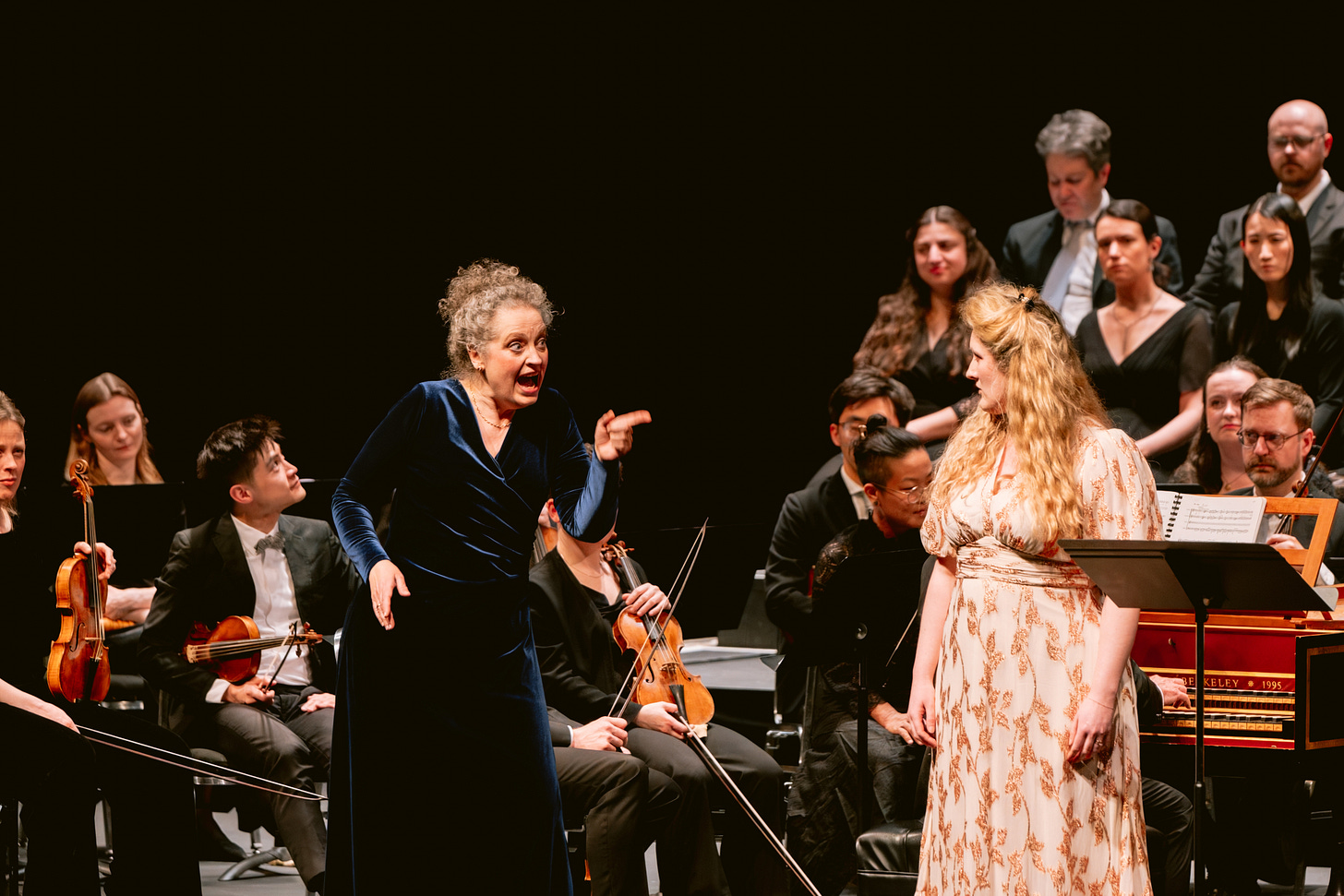 The mythological strongman famous for his twelve labors is the title character, but the drama is focused on two women in his life: his wife Dejanira, who switches suddenly from a loving partner to a coiled ball of envious fury, and the captive princess Iole, whose irresistible charms are what give Dejanira the idea that Hercules might have other things on his mind than military conquest. (He doesn’t.) The vocal contrast between these two characters — with Dejanira sung by mezzo-soprano Ann Hallenberg in lacerating cascades of impeccable coloratura while soprano Hilary Cronin countered with broad, placid melodies of unearthly beauty — delineated the conflict in musical terms.