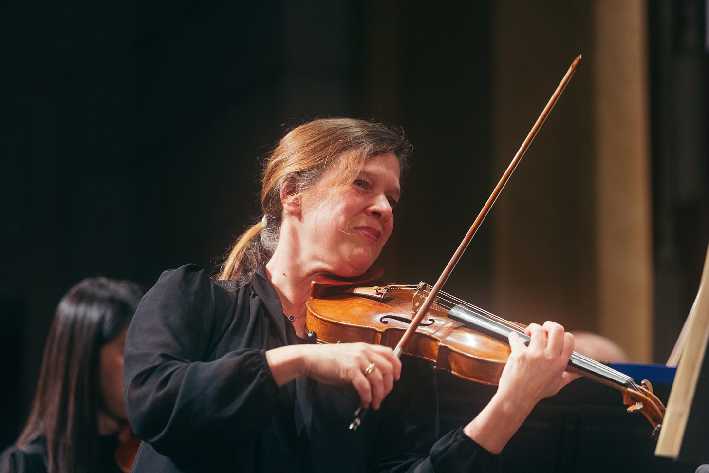 Perhaps the evening’s most heartening aspect was the chance to hear the first winner of the Legacy Orchestral Composition Contest, the company’s initiative to promote and commission emerging composers. This was an exciting new Violin Concerto by the young Chinese-American composer Bobby Ge, and the two movements the orchestra played (out of three) proved both accessible and wondrously subtle. One movement offered a brisk motoric dance, with a burbling pulse that sounded regular but seemed to add and drop beats almost at will; the second was slow, atmospheric and shimmeringly lovely. Because the prize had been so recently announced, there was no time for a single violinist to learn both movements. So the soloist duties were shared, prompting splendid turns from concertmaster Cordula Merks (who had previous shone in Rimsky-Korsakov’s Scheherazade) and associate concertmaster Heeguen Song. It’s a piece I can’t wait to hear again — hopefully next time from the pit, accompanying a new ballet.