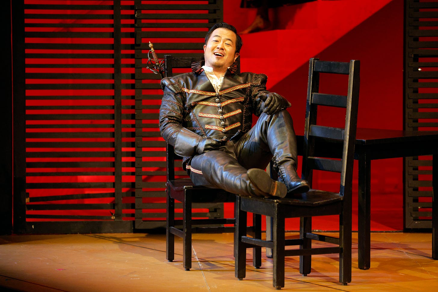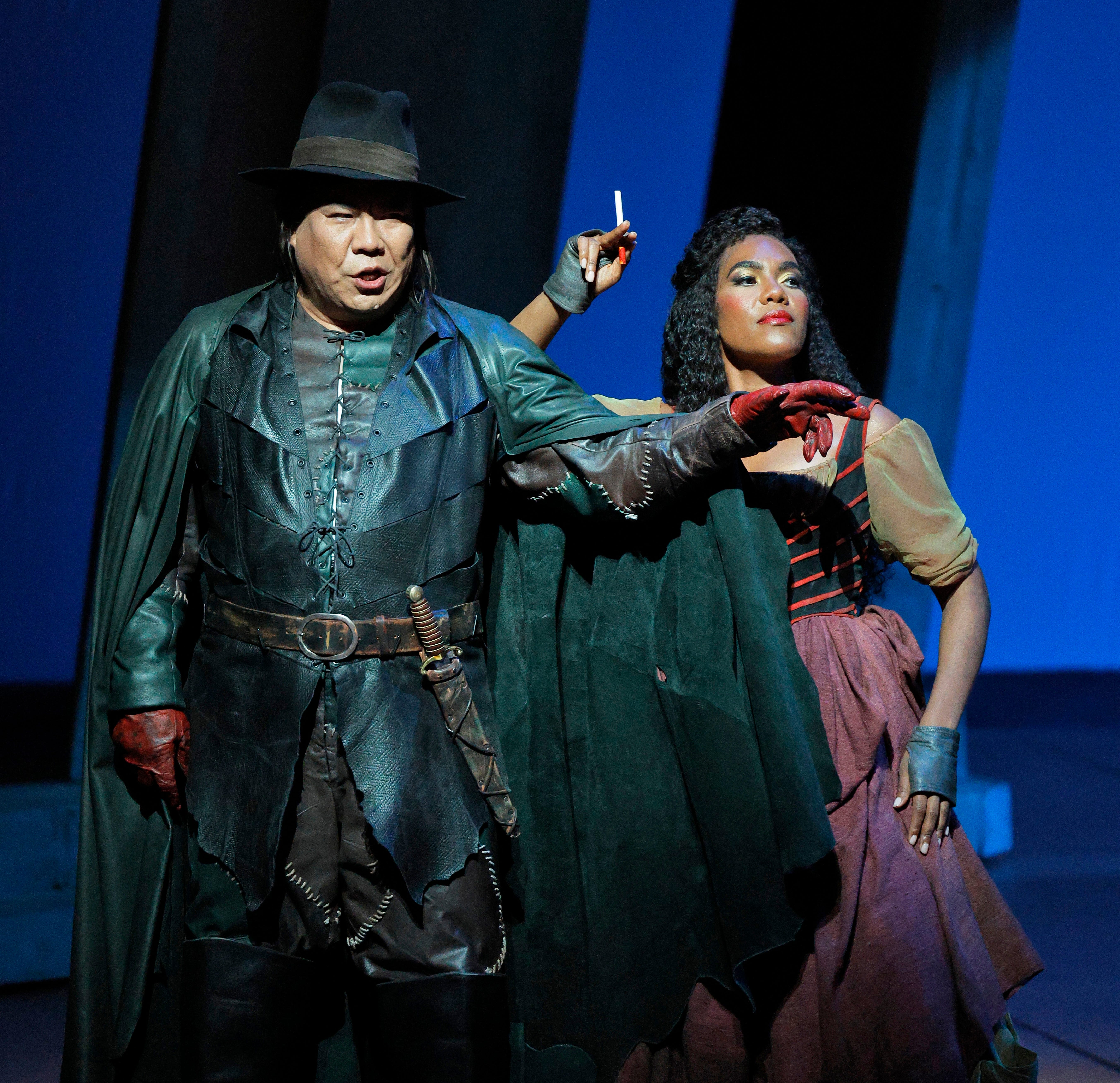 I said everyone in the cast was superb, and I did not lie. Tenor Yongzhao Yu made a bright and sonorous house debut as the lecherous Duke of Mantua, and Peixin Chen, at the other end of the vocal range, brought his gloriously cavernous bass to the role of the hired assassin Sparafucile. (He’ll be back in November for the world premiere of Huang Ruo and David Henry Hwang’s The Monkey King.) Add to that the luxury casting of mezzo-soprano J’Nai Bridges as Maddalena, baritone Aleksey Bogdanov as Monterone, a passel of Adler Fellows, and the singers of the Opera Chorus led by John Keene, lighting up the stage at every turn. It’s brilliance all the way down.