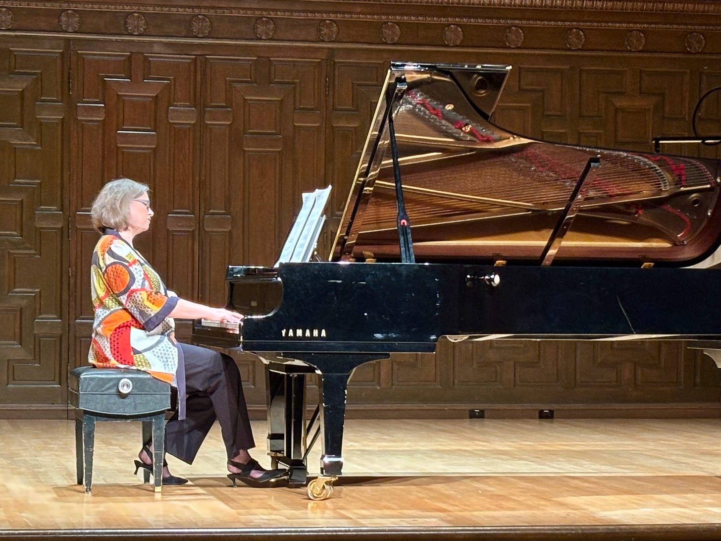 What struck me most about Williams’ gorgeous and reserved performance was how deftly it caught that duality. A lot of Feldman’s music boasts a vein of restrained sensuality, but Triadic Memories is considerably more cerebral in its focus. The material is a string of gemlike musical cells — a pair of two- or three-note chords in alternation, a subtly varied five-finger exercise, a snippet of melody — that repeat in unpredictable iterations. (Depending on the performer’s choices, a performance can range in duration between Williams’ concise 70 minutes and a more capacious 90 minutes or more.) In Williams’ hands, there was something appropriately sphinx-like about the journey, which drew the listener in while refusing to explain too much.