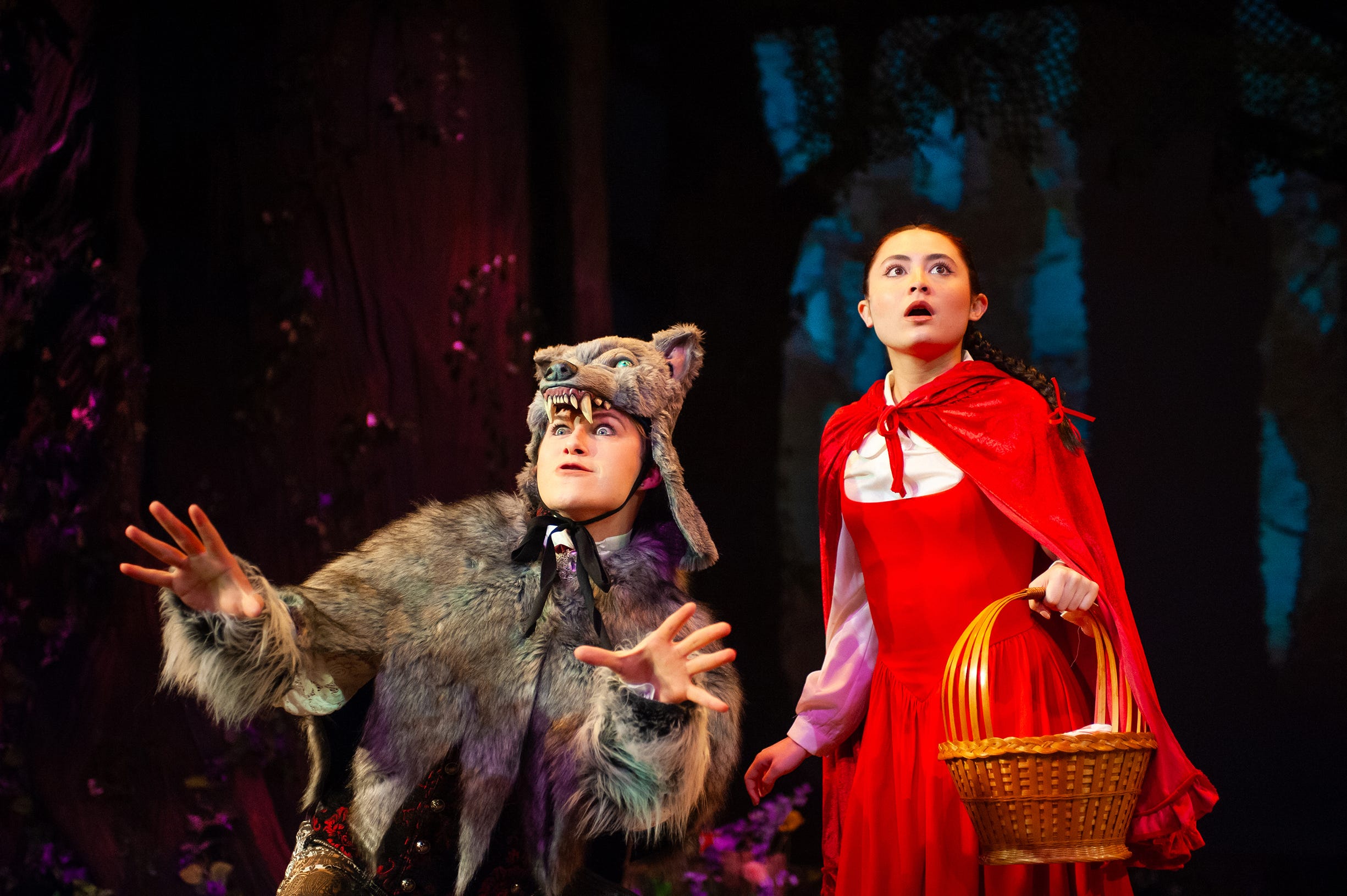 In Act 1, Sondheim and Lapine knit together some half-a-dozen familiar childhood tales — those of Rapunzel, Cinderella, Jack and the Beanstalk, Little Red Riding Hood, and more — so that their storylines constantly overlap. It’s a tour de force of narrative stitchery, but even here there are emotional and psychological undercurrents running throughout: the ambivalence of Cinderella at the royal ball (“On the Steps of the Palace”), the world-altering force of Jack’s trip to the top of the beanstalk (“Giants in the Sky”), or my favorite song, “I Know Things Now,” which in no more than three minutes casts Little Red Riding Hood’s passage through the Wolf’s gullet as a metaphor for her induction into the slimy, scary, and exciting world of sex.