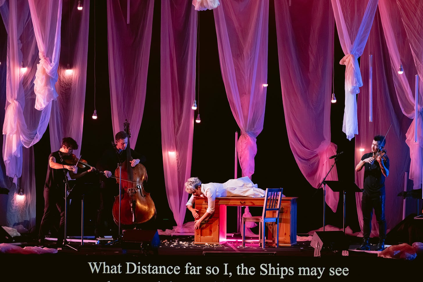 I came as close as I’ve ever come on Saturday night, when mezzo-soprano Joyce DiDonato and the instrumental ensemble Time for Three came to Zellerbach Hall, under the aegis of Cal Performances, to perform Kevin Puts’ magnificent song cycle Emily — No Prisoner Be. The title is syntactically rockier than one might wish, but it’s easy to overlook that misdemeanor given music of such versatility, interpretive insight and sheer sonic beauty. There were times during the elaborately staged performance when I could barely believe the richness of what I was hearing. There were passages that illuminated a line or even an entire poem of Dickinson’s in ways I would not have thought possible. The performers were endlessly responsive and alert to the score’s demands. The evening was little short of breathtaking.
