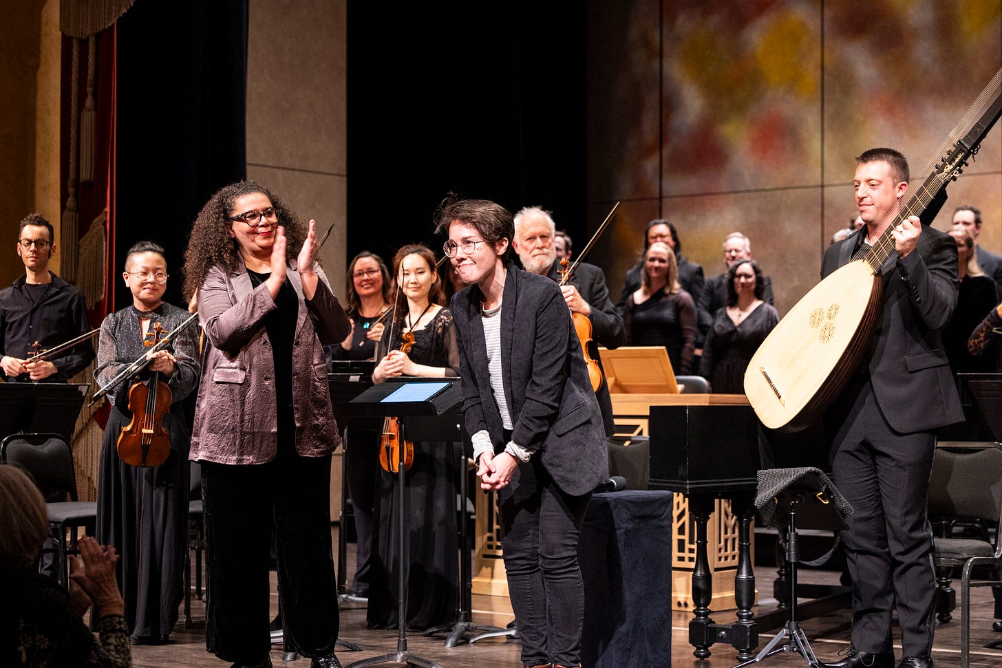 Well, not so fast. One of the wonderful developments of recent decades is the growing number of composers and performers who have realized that the world of Baroque and other early music represents a resource for creating new and inventive music. Case in point: The Holdfast, a magnificently beautiful and evocative quasi-cantata by composer Caroline Shaw, which had its commissioned U.S. premiere during Philharmonia’s concert on Friday night.