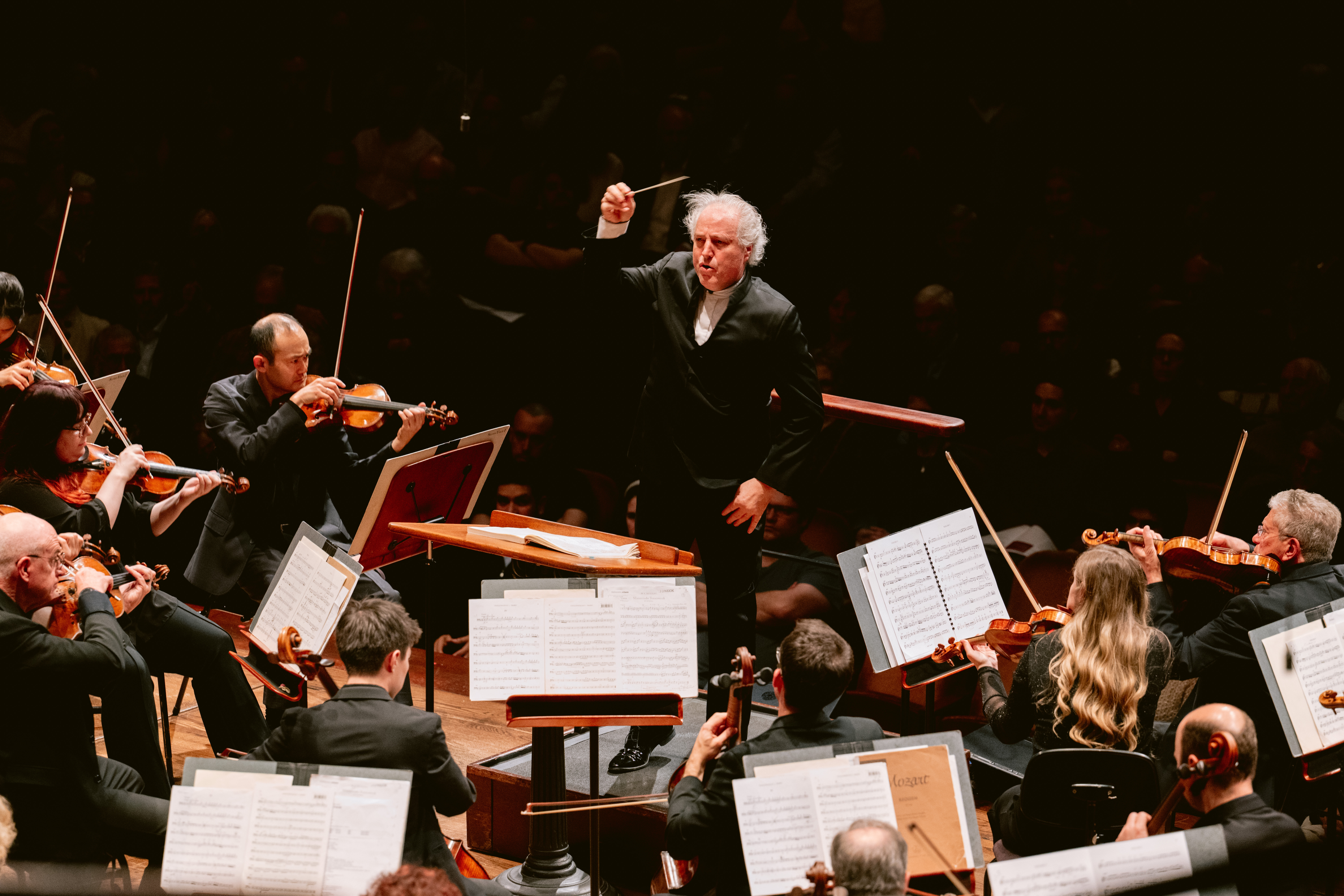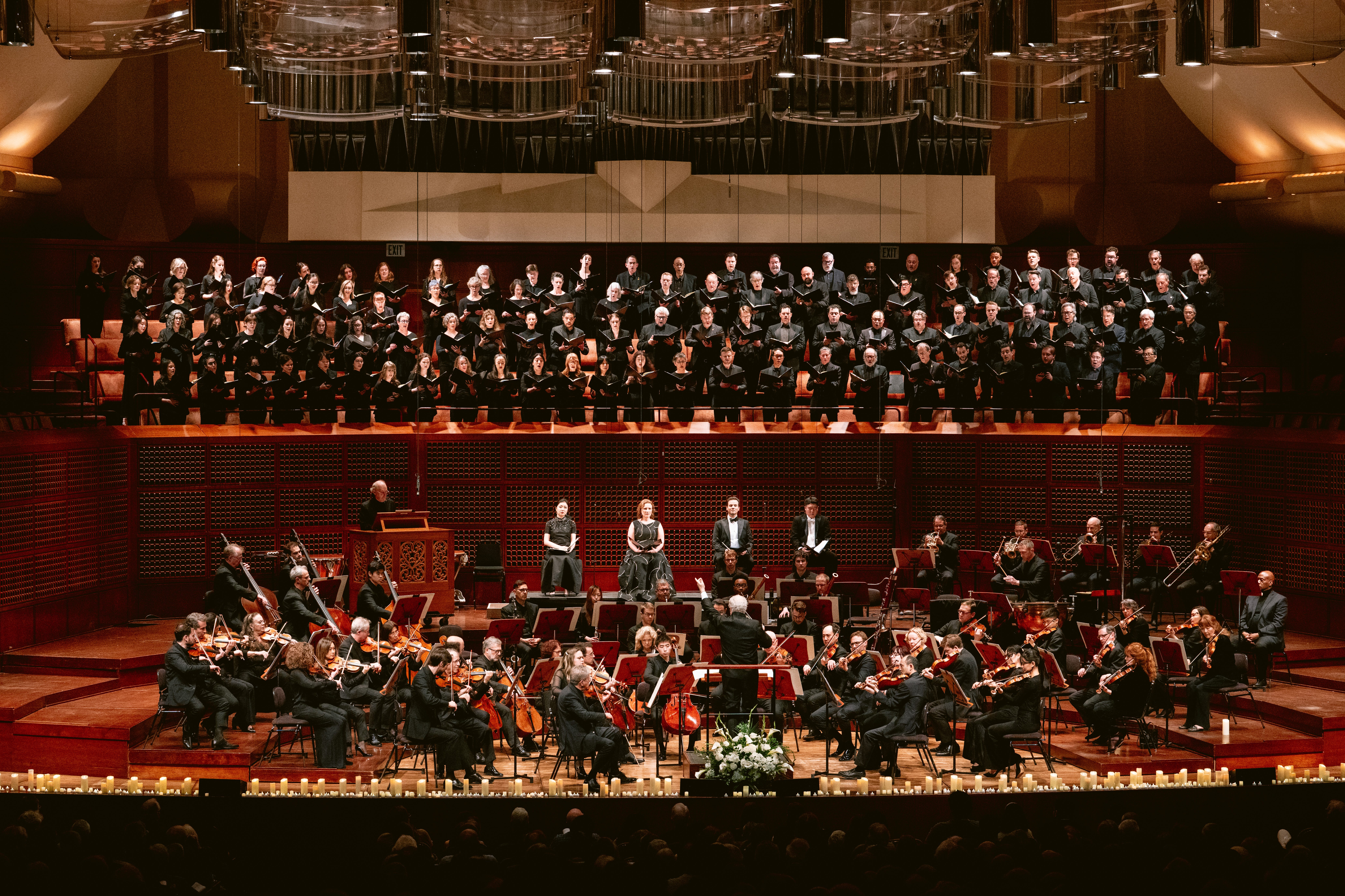 Honeck added other adornments into the mix. Patrons were invited to place electric candles at the foot of the stage in honor of Robison or anyone specially significant to them. There were funerary bits of Gregorian chant, and readings from the Book of Revelation and the Holocaust-era poetry of Nelly Sachs. There were brief selections from other music by Mozart, including, most stirringly, the tiny choral motet Ave verum corpus — one of the composer’s final creations — which in the Symphony Chorus’s luminous performance under director Jenny Wong sounded ethereal and almost completely disembodied. It included a reading from Mozart’s final letter to his father, offering consolation in the face of the old man’s impending death.